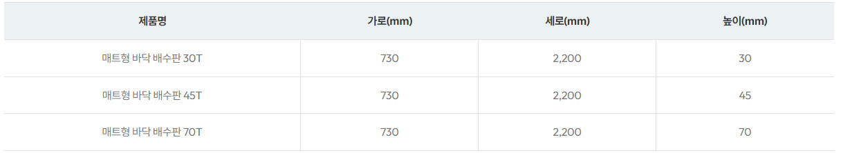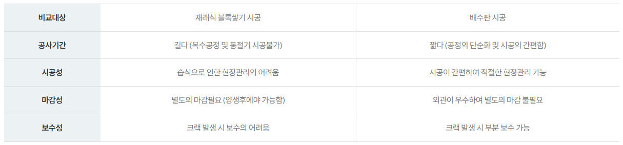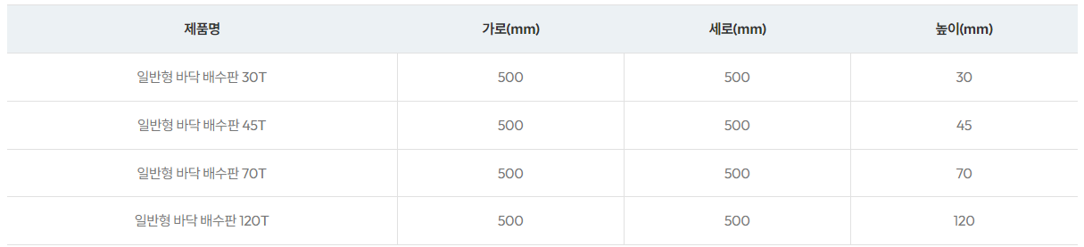 (12) 바닥 배수판의 성능기준 : 압축강도 50KN이상, 합성수지 제품으로 결합이 가능한 구조여야 한다.